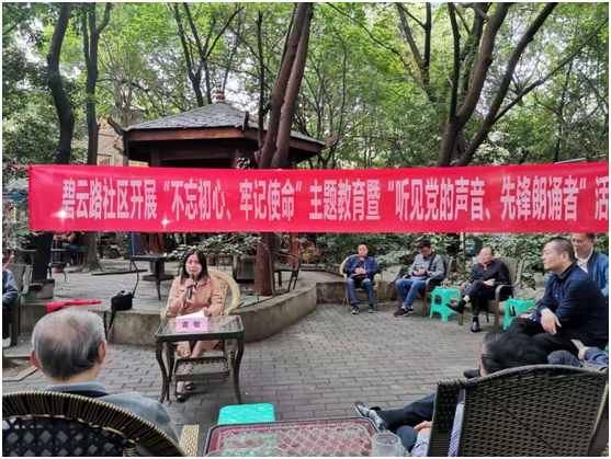 四川新闻网成都10月22日讯 成都双楠街道碧云路社区持续深入开展“不忘初心、牢记使命”主题教育活动。昨(21)日,社区举行“不忘初心、牢记使命”主题教育暨“与信仰对话.向梦想进发”先锋朗诵者活动。活动邀请到党员袁敏同志与社区党员群众分享自己对革命英烈的敬仰,以及自身的所感所想。